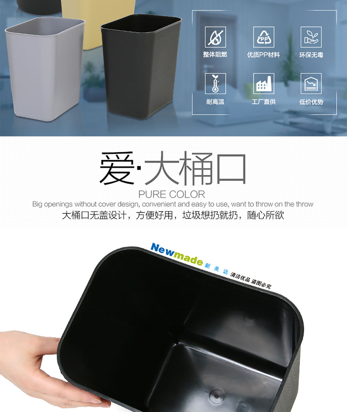 欢朋浴室垃圾桶AF07015黑色